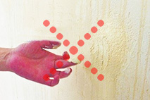 同行仿石漆含量少,添加双飞粉、石灰粉、白水泥等强碱性物质,施工时会伤手,做成墙面会泛白现象。